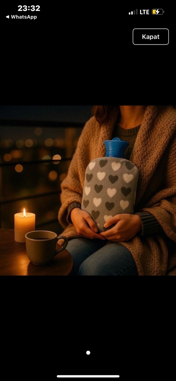 Kalp desenli yumuşak kaplamalı gri sıcak su torbası, sıcaklık ve konfor sağlar .