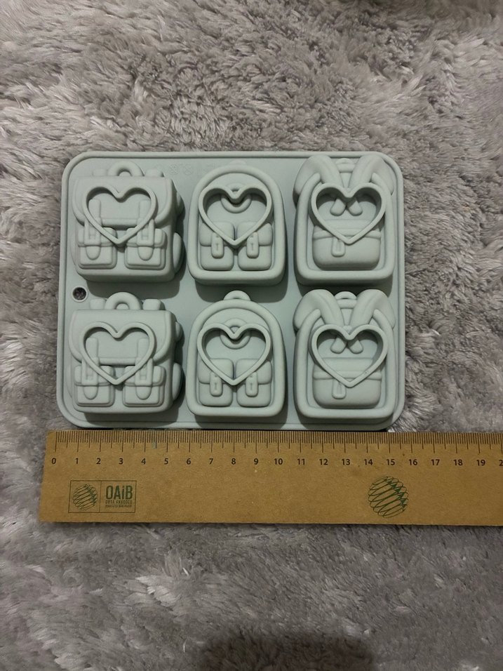 Gri silikon kek kalıbı, üzerinde kalp detaylı altı bölmeli tasarım. Küçük kekler veya tatlılar için uygun.