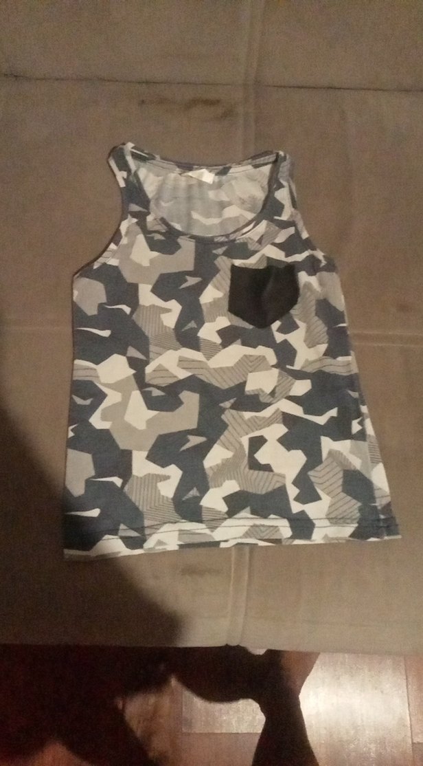 Gri kamuflaj desenli, siyah cep detaylı, ince ve esnek kumaştan yapılmış, bisiklet yaka, normal boy erkek çocuk atlet. Rahat ve şık bir sokak stili sunar.