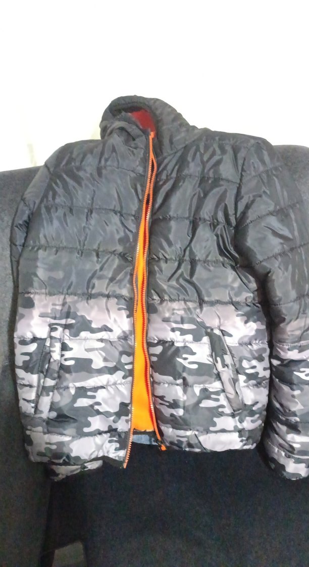 Yüksek yakalı, fermuarlı ve fitted kesim gri kamuflaj desenli erkek çocuk mont. Yumuşak ve sıcak dokulu kumaştan yapılmıştır.