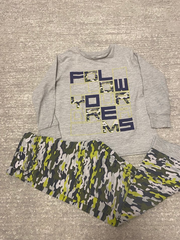 Gri uzun kollu, bisiklet yaka üst ve kamuflaj desenli pantolondan oluşan, yumuşak dokulu pamuklu kumaş 4-5 yaş bedenli LCW markadır kusuru yoktur