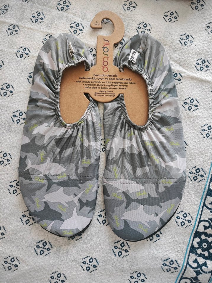 Gri kamuflaj desenli SlipStop Deniz havuz ayakkabısı 40-41 numara yenidir detay sorabilirsiniz iade yoktur markası Slip Stopdur.#penti#deniz#şort#tatil#slipstop#ayakkabi#havuz