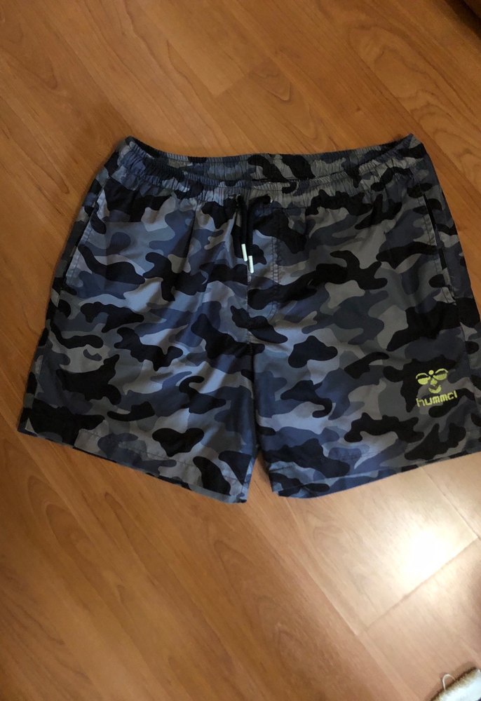 Gri kamuflaj desenli, kemerli bel yapısına sahip erkek mini şort. Rahat kesimiyle sportif ve sokak tarzına uygundur.