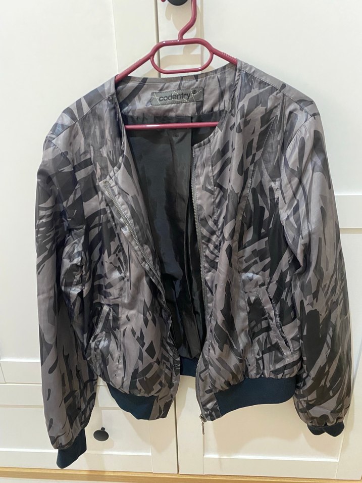 Gri Kamuflaj Desenli Kadın Ceket