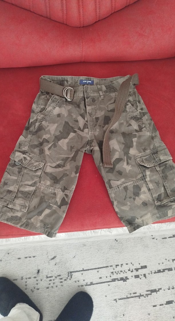Gri Kamuflaj Desenli Kemerli Erkek Şort 28 beden