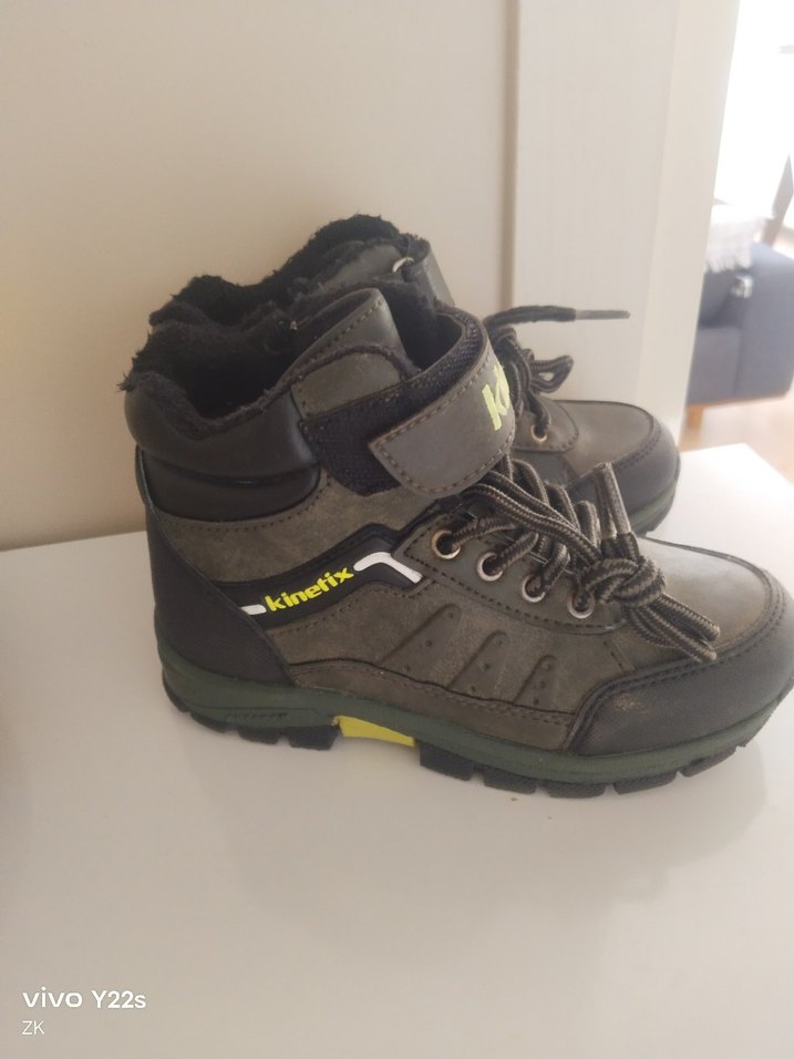 Gri kamuflaj desenli, kauçuk malzemeden yapılmış erkek çocuk botu. Kolay kapanan Velcro bantlı, trendi gündelik stile uygun.
