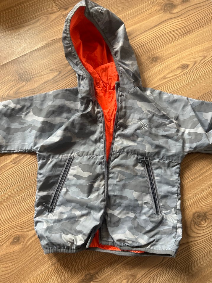 Çift taraflı kullanım.Gri kamuflaj desenli, kapüşonlu erkek çocuk yağmurluğu. Fermuarlı ön ve cepleriyle rahat kullanım sağlar. İç kısmı turuncu renktedir. ️