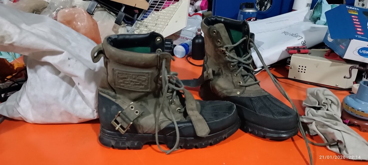 Gri kamuflaj desenli, deri erkek botları tokalı detaylarla grunge punk tarzını ve rock punk havasını yansıtıyor. Günlük kullanım için uygundur.