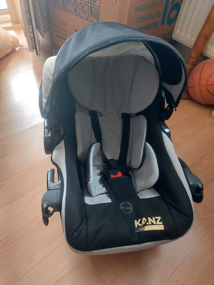 KANZ marka gri bebek puset, yumuşak dolgulu ve ayarlanabilir kayışlıdır. Güneş koruması için tente mevcuttur.