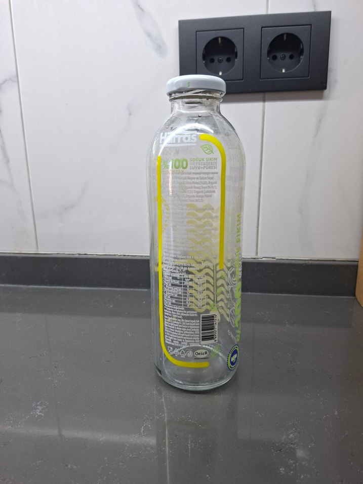 Gri Kapaklı Sarı Detaylı Cam şişe BOŞ