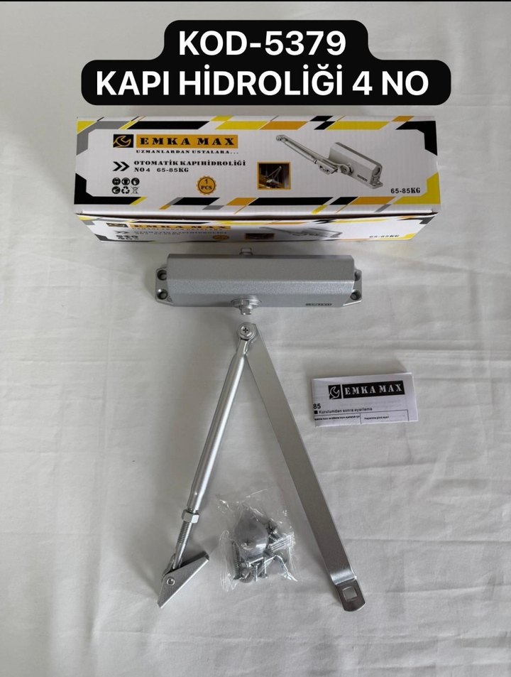 Gri renkli K0D-5379 model ENKAMAX kapı hidroliği, 65-85 kg arası kapılar için uygundur. Montaj vidaları ve kullanım kılavuzu ile birlikte gelir.