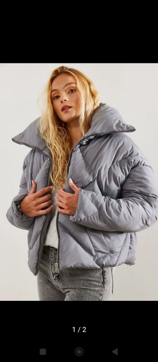 Gri kapitone kadın kışlık mont, yüksek yakalı ve fermuarlı. Bol kesim, uzun kollu ve midi boyda. Yumuşak, sıcak kumaştan, günlük sokak tarzına uygun. ❄️