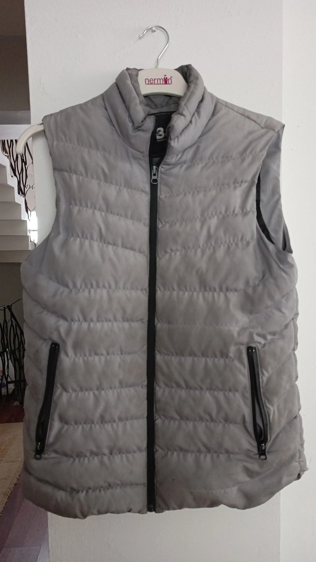 Gri Kapitone Yelek Fermuarlı