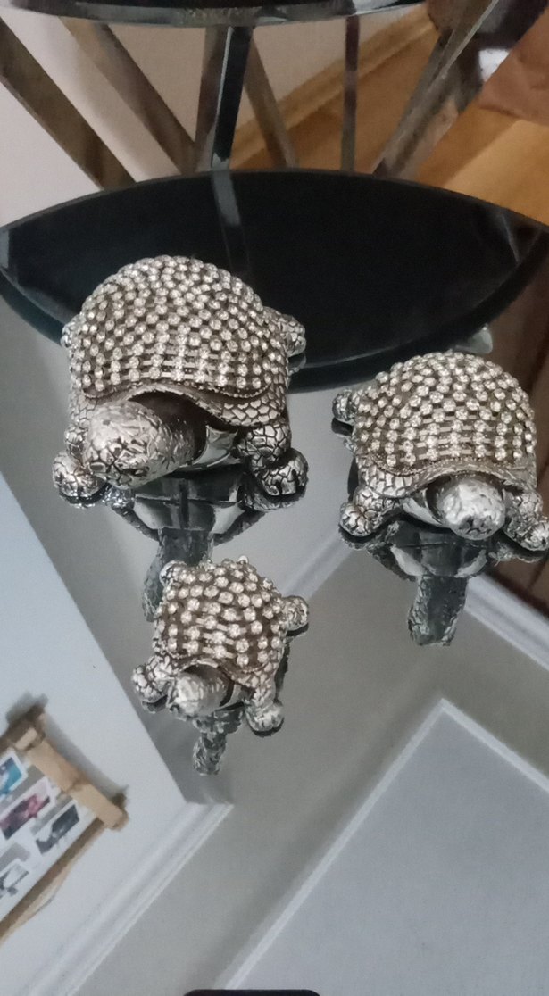 Detaylı dokulu kabuklara sahip üçlü gri kaplumbağa figür seti, dekorasyon için uygun.