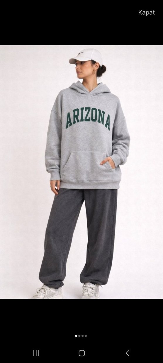 Gri renkte, uzun kollu, kapüşonlu ve ARIZONA baskılı sweatshirt. Rahat kesimi ve yumuşak kumaşıyla gündelik şıklık sunar. etiketle gönderilecek