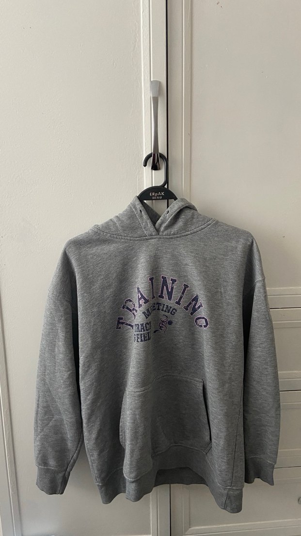 Gri kapüşonlu sweatshirt, baskılı ve bol kesimdir. Uzun kollu, yumuşak ve sıcak kumaştan üretilmiştir, rahat spor tarz için uygundur. ♀️