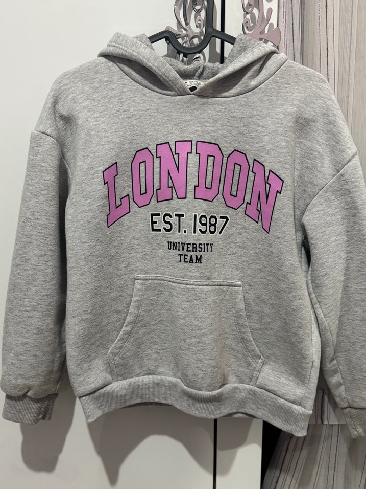 Gri renkli, uzun kollu ve kapüşonlu bu sweatshirt, rahat kesimi ve baskılı 'LONDON EST. 1987 UNIVERSITY TEAM' yazısıyla dikkat çekiyor. Ön cep detaylı, yumuşak ve sıcak tutan kumaştan üretilmiştir. ️