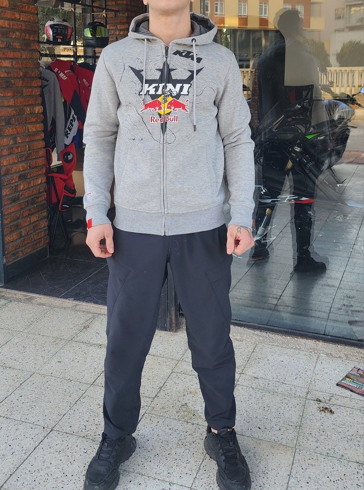 Gri renkli, baskılı ve fermuarlı kapüşonlu sweatshirt, rahat kesimiyle spor sokak stiline uygun, yumuşak ve sıcak kumaştan üretilmiştir.İçi polardır. M ve L beden kaldı Mankendeki M bedendir ♂️