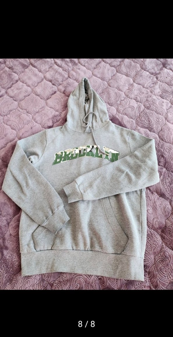 Gri kapüşonlu sweatshirt, uzun kollu ve bol kesimdir. Önünde Brooklyn baskısı , rahat kullanım sağlar. ️Bir kusur yok.. küçük geldi. nerdeise kullanilmadi. #üstgiyim