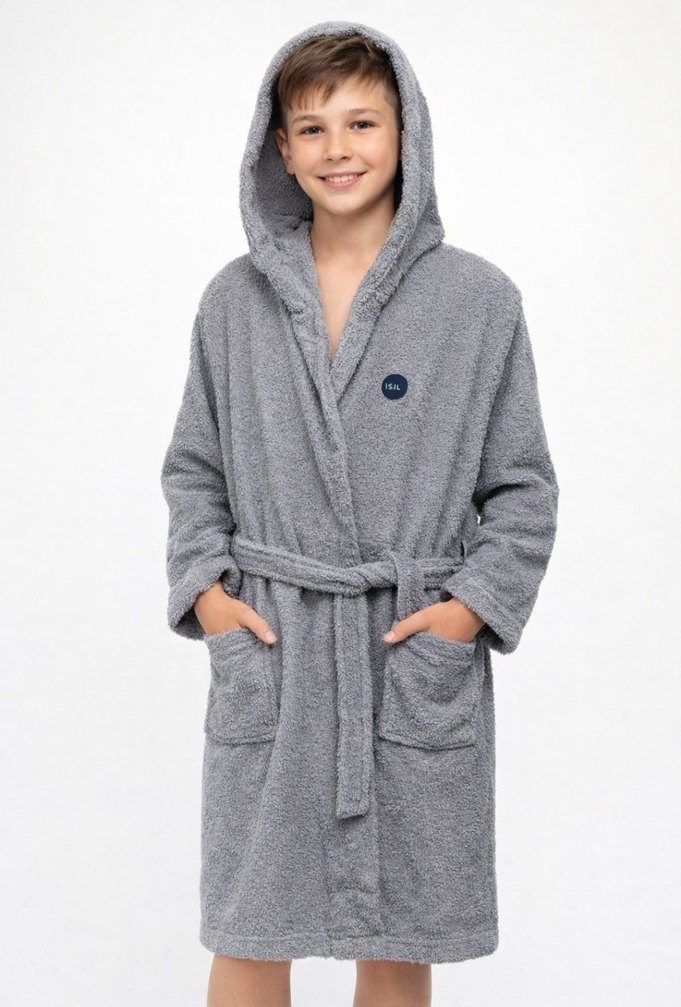 Gri Kapüşonlu Çocuk Bornoz 15/16 yaş
