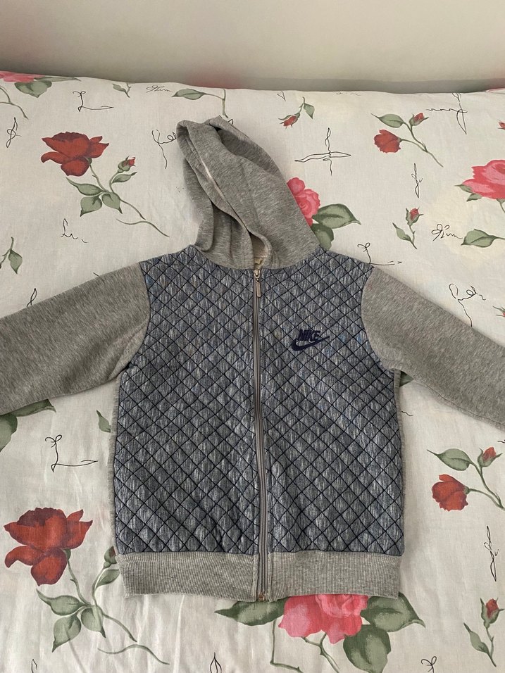 Gri Kapüşonlu Çocuk Fermuarlı Ceket