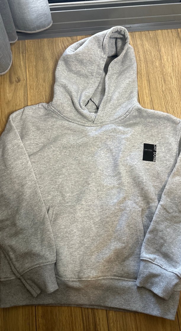 Gri kapüşonlu sweatshirt, uzun kollu ve bol kesimlidir. Yumuşak ve sıcak kumaştan üretilmiş, baskılı detay ve ön cep bulunur. Günlük rahat kullanım için uygundur. Zara 10yaş