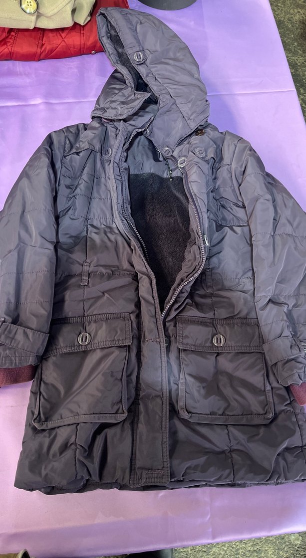 Gri renkte, kapüşonlu ve düğmeli cep detaylı, uzun kollu, orta boy kadın ceketi. Yumuşak ve sıcak iç astarlı, dış mekan kullanımına uygun.