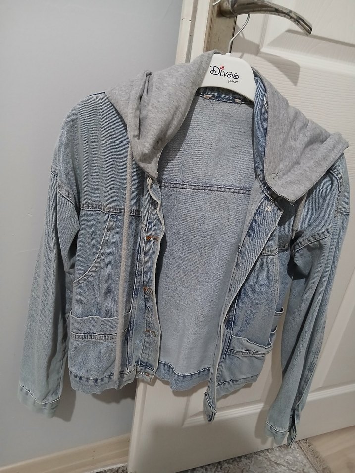 Gri renkli, kapüşonlu ve düğmeli uzun kollu kadın denim ceketi. Rahat kesimi ve midi boyuyla günlük sokak stiline uygundur. Etiket: Divas.