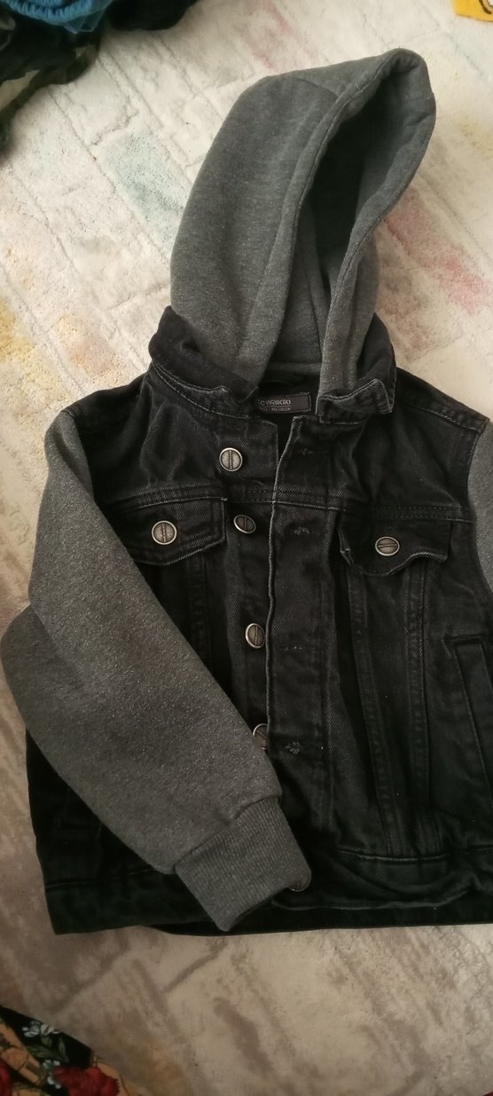 Gri Kapüşonlu Erkek Çocuk Kot Ceket