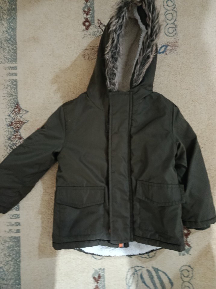 Gri renkli, kapüşonlu ve kürklü detaylı erkek çocuk montu. Yumuşak ve sıcak kumaştan, bol kesim ve cep detaylıdır. çok yeni defo yok