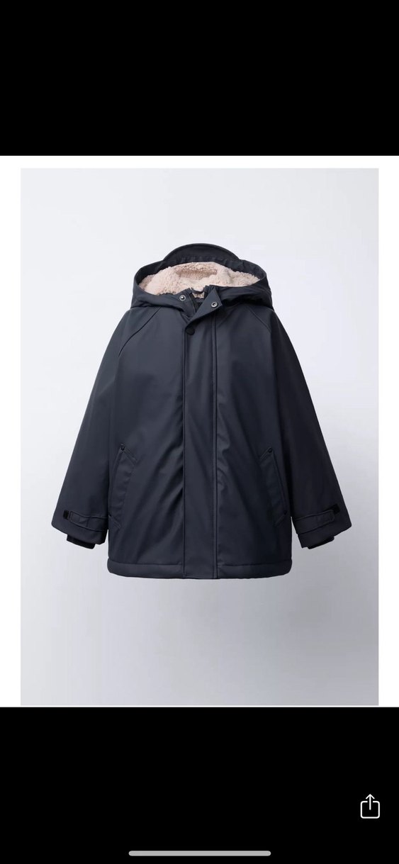 Kapüşonlu ve kürk detaylı gri erkek çocuk montu, düz renk ve rahat kalıpla sıcak tutar.
