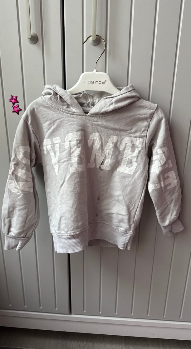 Gri renk, kapüşonlu ve uzun kollu erkek çocuk sweatshirtü. Yumuşak ve sıcak kumaştan, yapışkan bant detaylı, rahat kesimle sokak tarzı için uygun. Paketli kalmasından siyah lekesi var yıkanınca geçer onun dışında deforme yok