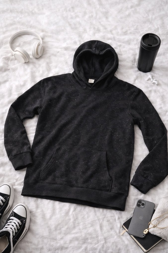 Gri kapüşonlu sweatshirt, uzun kollu ve bol kesimdir. Yumuşak ve sıcak kumaştan üretilmiş, sade ve rahat bir günlük stil sunar.