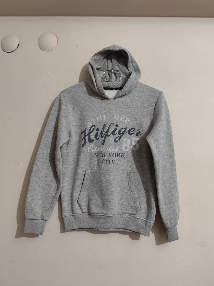 Gri kapüşonlu sweatshirt, uzun kollu, yumuşak örme kumaştan. Üzerinde "NEW YORK CITY" yazılı baskı bulunur, gündelik sokak tarzına uygun. Sardonlu. kışlık. temiz sıkıntısız yrni gibi Boy=60 2 Koltuk arası 50cm. 11/12 yaş çocuk lar için uyumlu.