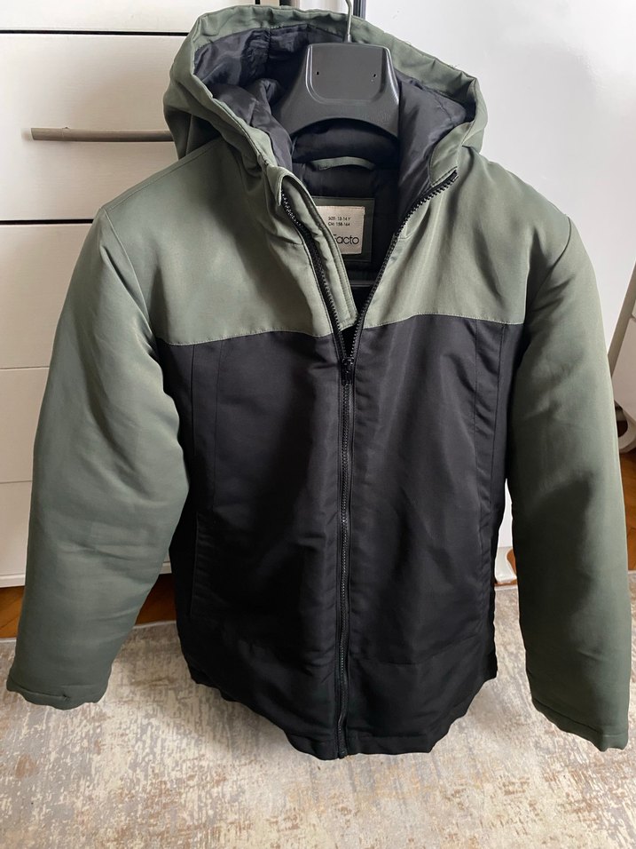 Gri ve siyah tonlarda, sentetik kumaştan yapılmış, kapüşonlu ve fermuarlı, yüksek yakalı, uzun kollu, normal boyda, erkek kayak ceketi. Günlük rahat kullanıma uygundur. ❄️ hiçbir sorunu kusuru yoktur