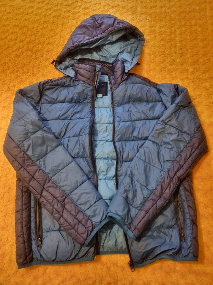 Gri renkli, kapüşonlu, fermuarlı cepli, uzun kollu ve normal boyda erkek mont. Yumuşak ve sıcak kumaştan, günlük kullanım için uygundur.