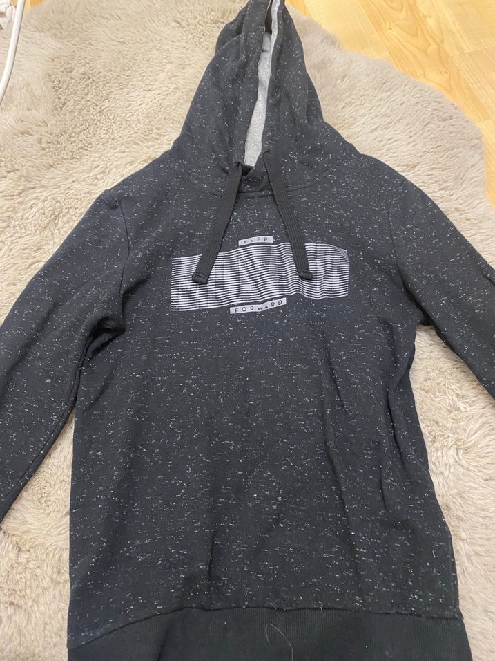 Gri renkli, örgü dokulu, uzun kollu ve kapüşonlu, trend sokak stili için uygun, normal boyda erkek sweatshirt.