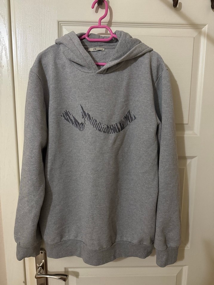 Gri renkte, uzun kollu, yuvarlak yakalı ve kapüşonlu kadın sweatshirt. Rahat kesimiyle günlük sokak stiline uygun bir parça. Kusuru yoktur