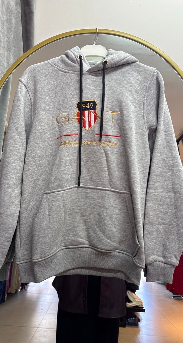 Gri renkli, kapüşonlu ve uzun kollu erkek sweatshirtü. Yumuşak fleece kumaştan üretilmiş, baskılı logo ve ön cep detayına sahip, rahat kesim.