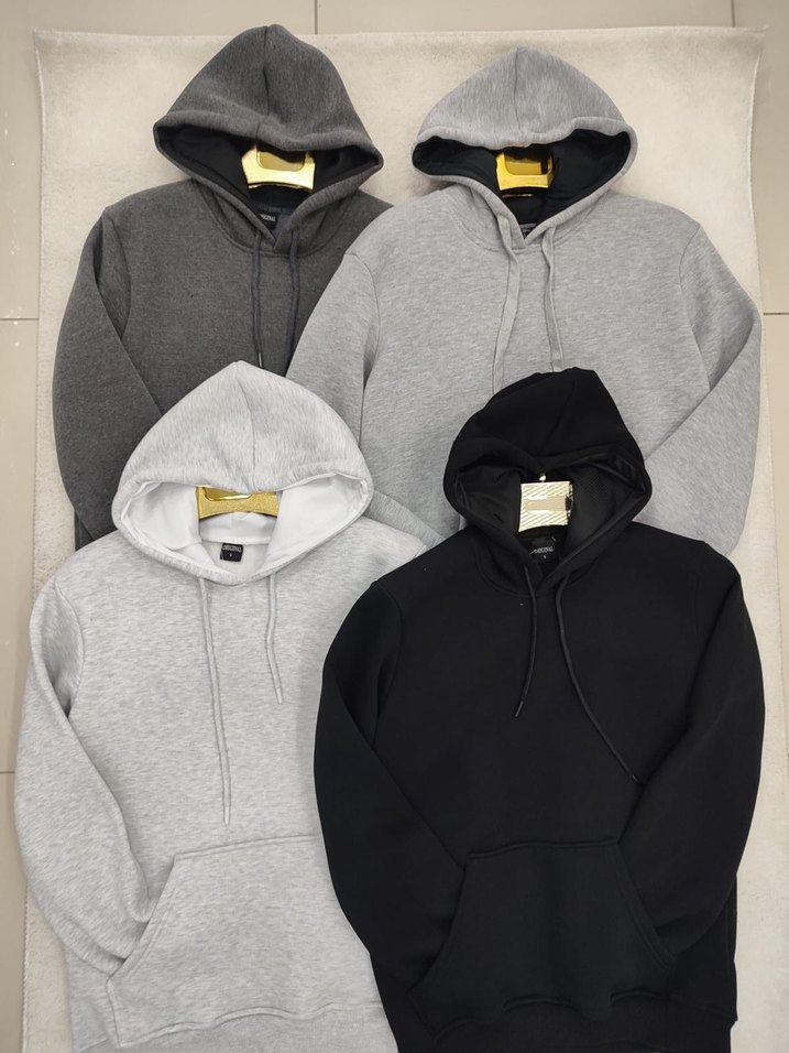 Erkekler için gri ve siyah tonlarında, yumuşak ve sıcak kumaştan yapılmış kapüşonlu sweatshirt. Uzun kollu, desensiz ve rahat kesim, günlük kullanım için uygundur.