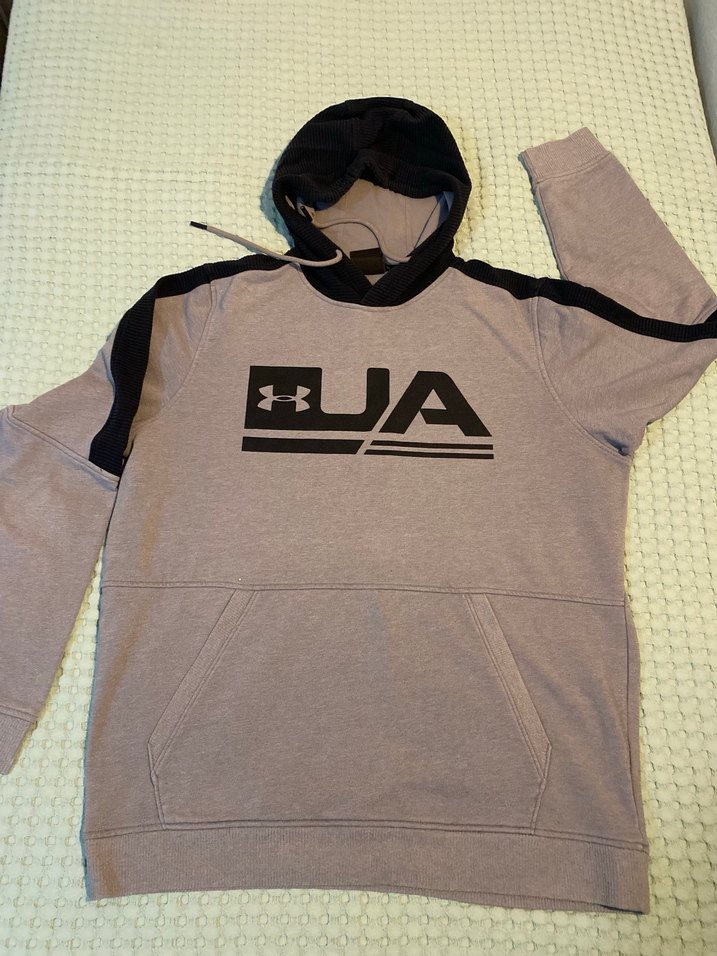 Fitted kesim gri erkek sweatshirt, kapüşonlu ve uzun kolludur. Yumuşak ve sıcak kumaştan üretilmiş, büyük logo bulunur.