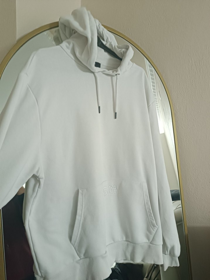 Gri renkte, yuvarlak yakalı, uzun kollu ve rahat kesim kapüşonlu sweatshirt. Normal uzunlukta ve ön cep detaylı, günlük kullanım için uygun. mavi marka kolunda küçük lekeler var diye uyguna veriyorum xl bedendir