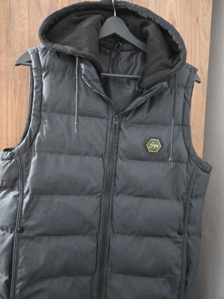 Gri Kapüşonlu Erkek Yelek