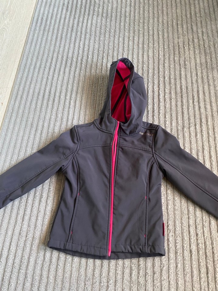 Fermuarlı, kapüşonlu ve yüksek yakalı, uzun kollu, gri renkte çocuk ceketi. Yumuşak ve sıcak kumaştan, günlük dış mekan kullanımı için uygun.