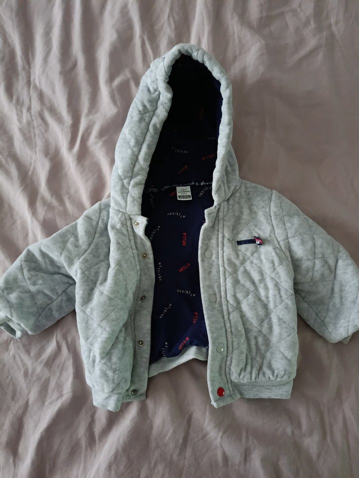 Gri renkte, çıtlı ve kapüşonlu erkek çocuk montu. Rahat kesimi ve yumuşak, sıcak tutan kumaşıyla günlük sokak tarzına uygun.