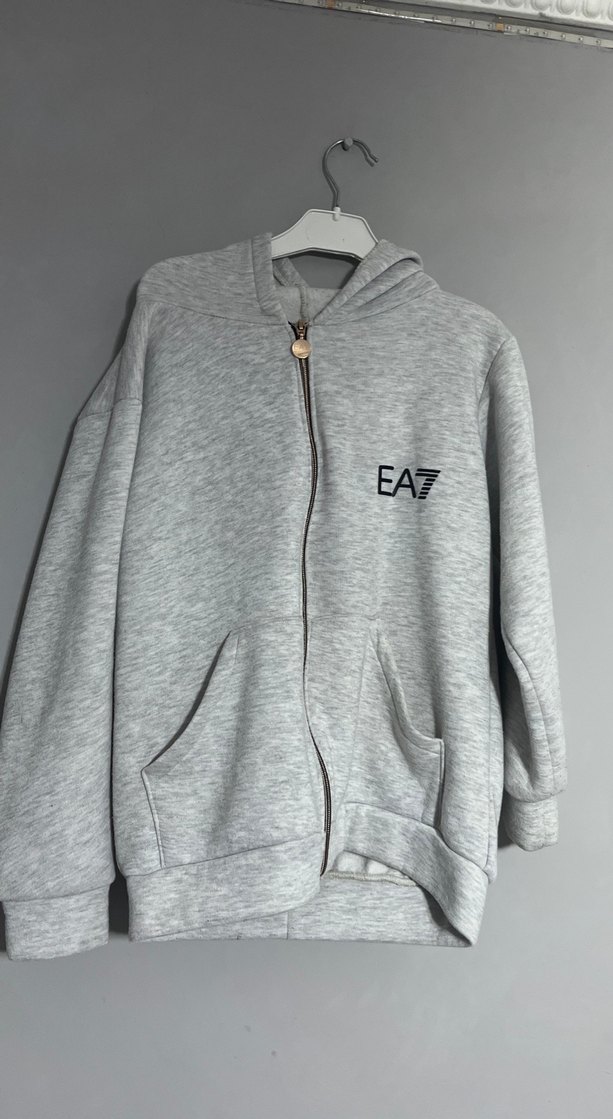 Gri renkte, fermuarlı, uzun kollu erkek çocuk sweatshirtü. Rahat kesimi ve 'EAT' baskısıyla günlük ve sokak stiline uygun yumuşak kumaş. ea7 9-10 yaş
