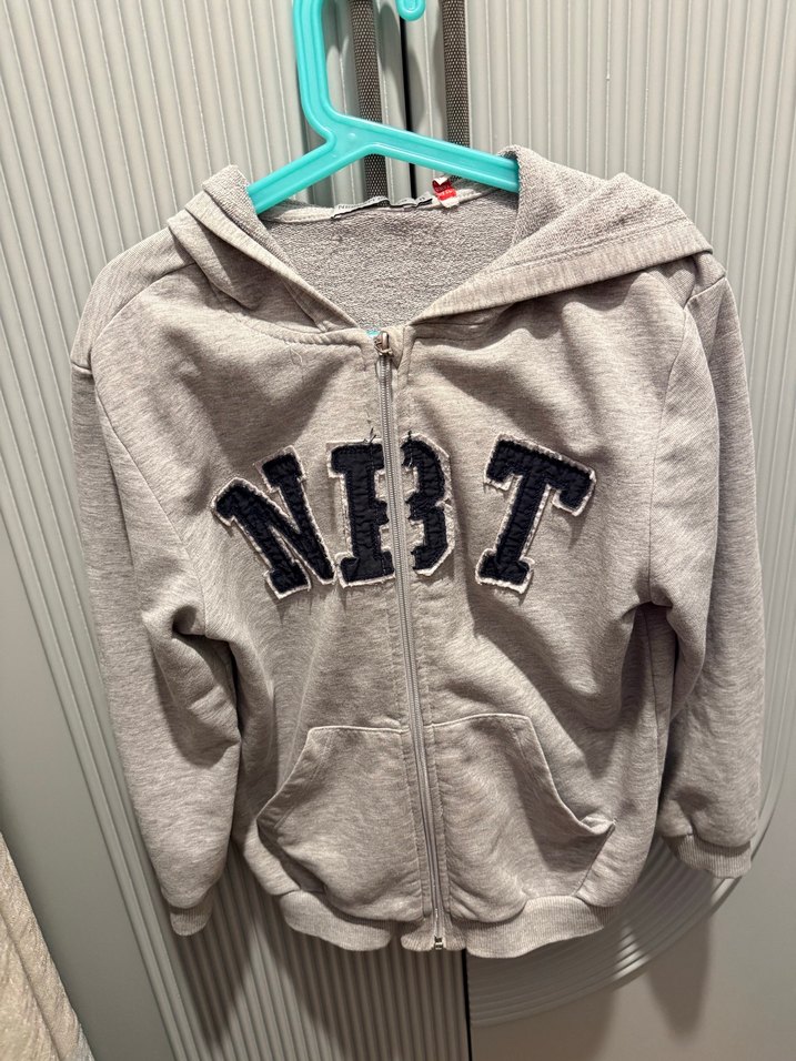 Gri renkli, uzun kollu, kapüşonlu ve fermuarlı erkek sweatshirt. Nakışlı 'NBT' yazısı ve yumuşak fleece kumaş kullanılmış. Bg stordan alınmıştır 7-8 yaş