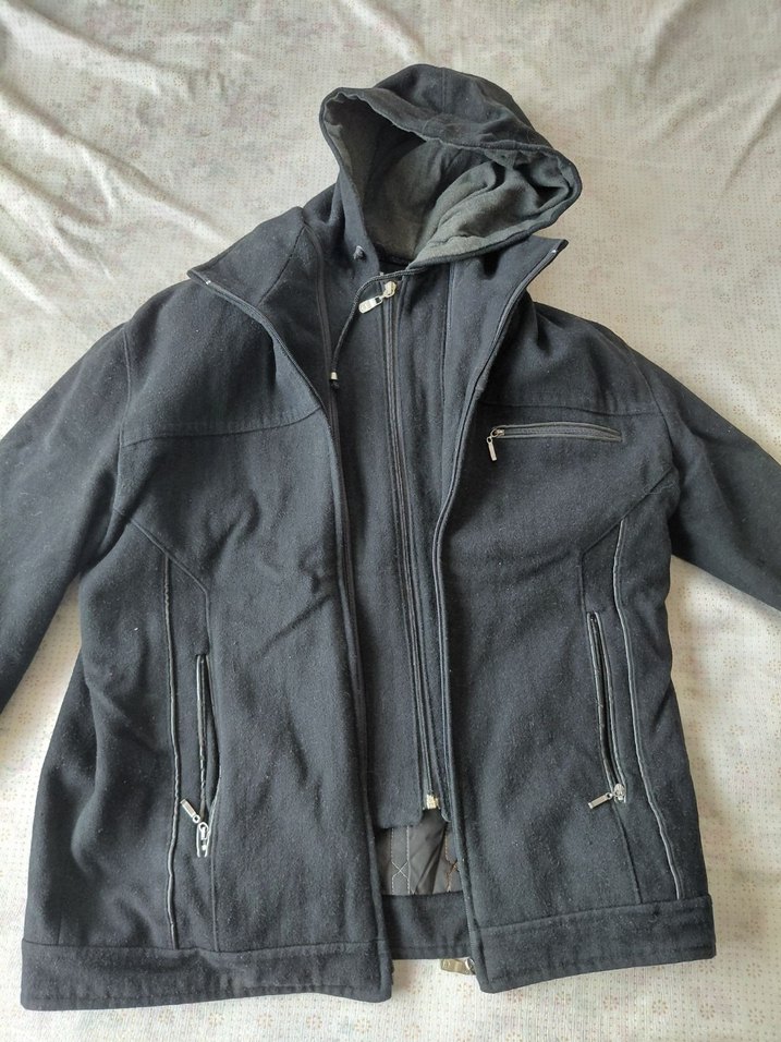Gri Kapüşonlu Fermuarlı Erkek kaban L/M beden
