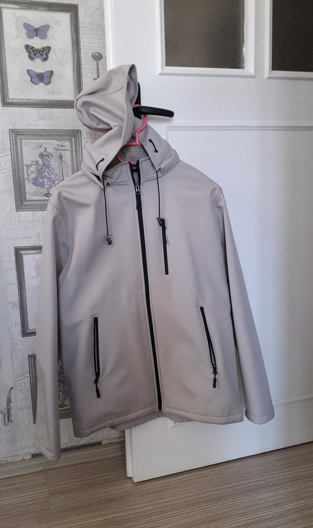 Gri renkli, fermuarlı, kapüşonlu erkek rüzgarlığı. Uzun kollu, normal kesim ve yumuşak, sıcak kumaştan üretilmiştir. bikac defa giyildi krem renkte içi polar Suvari marka l yaziyo ama m uygunlu s m