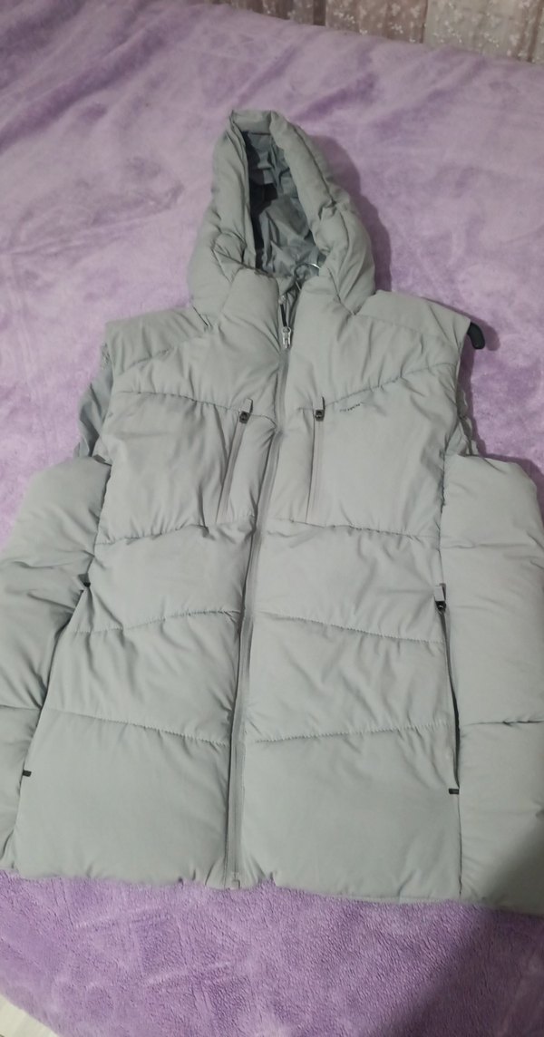 Gri renkli, kapüşonlu ve fermuarlı, kolsuz erkek yeleği. Normal boyda, notched lapel yakalı, rahat ve trend sokak stili için uygun. hiç giyilmedi hediye geldiği için değiştirme şansımız yoktu